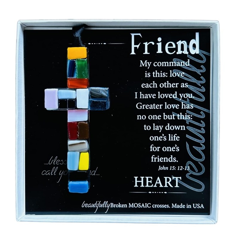 The Grandparent Gift Co. Friend, John 15:12 Beautifully Broken Mosaic Glass Cross in Scripture Box