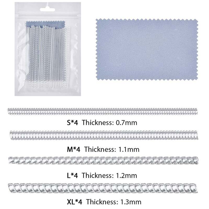 - Package contents: totally 16 pieces ring size adjusters in 4 different size and 1 piece silver polishing cloth; It is best to rotate along the direction of the coil when using it; If you feel difficult to use it, you can also watch the operation instructions or seek help from customer service