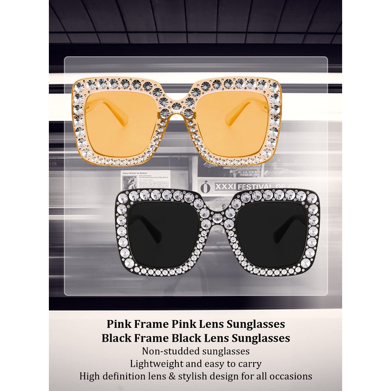 These oversize sunglasses are lightweight, shiny like real rhinestone sunglasses.