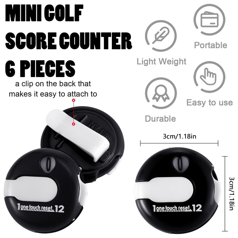Frienda 6 Pieces Golf Score Counter Mini Golf Stroke Counter Simple Attachment Scorekeeper Up to 12 Shots Score with One Touch Reset Clip, 6 Pieces (Black)
