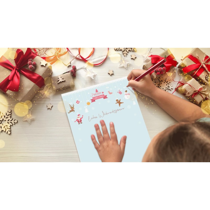 - Christmas letter paper – the Merry Christmas stationery set consists of 20 sheets of A4 paper (printed on one side) and the 20 matching envelopes (printed on both sides). The atmospheric writing paper also offers plenty of space for Christmas greetings or happy messages at the end of the year.