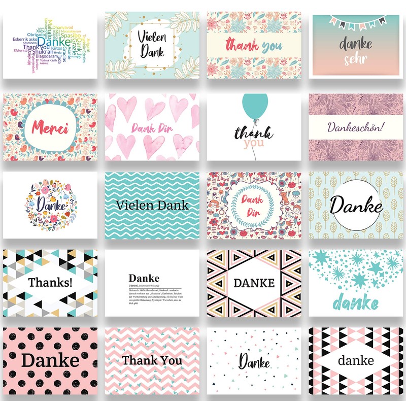 - ANSPRECHENDES DESIGN ❤️ In diesem schönen Set befinden sich 20 Danke Karten, alle Postkarten mit unterschiedlichen Motiven. Hier findet man sicherlich eine passende Karte für jeden Anlass & Empfänger!