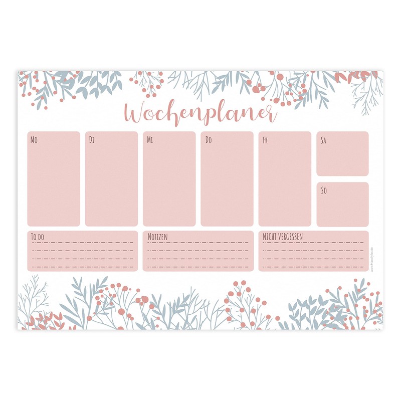 The My Week pads are made of paper and have 50 sheets including cardboard reinforced back for a pleasant writing comfort right up to the last sheet. In addition, you can use the pad with weekly planner function for almost half a year, as one page can be used per calendar week.