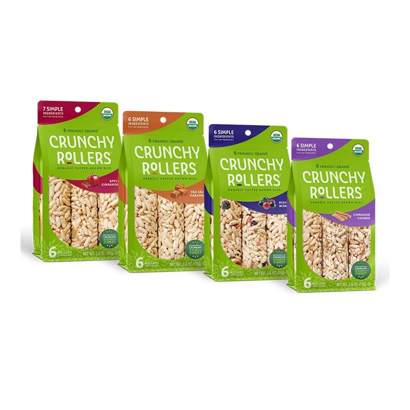 Friendly Grains - Crunchy Rollers - Organic Crispy Puffed Rice Rolls, Healthy for Adults and Kids - Variety Box (4 Packs of 6)