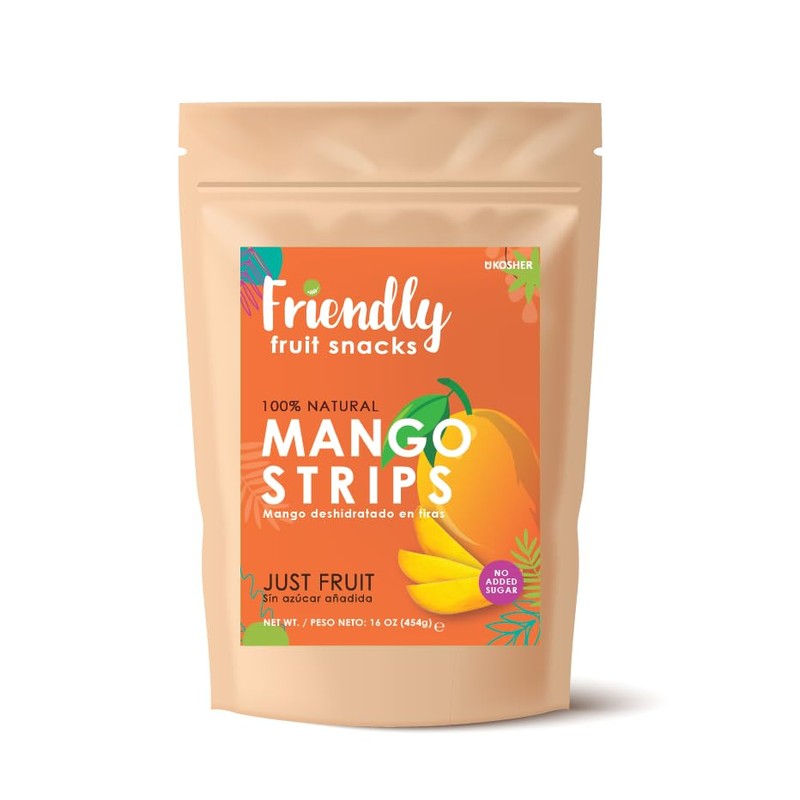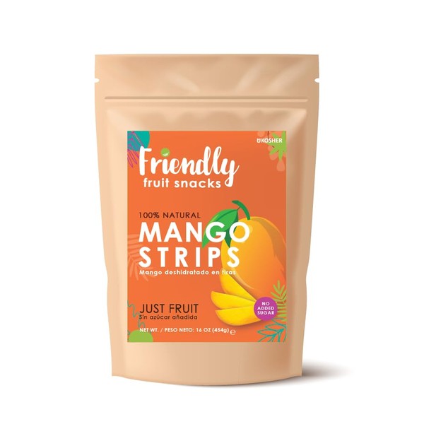 Friendly |Mango Strips |16 oz; (1 LB)| Natural, Unsweetened, Vegan, NON GMO, Superfoods, Kosher.