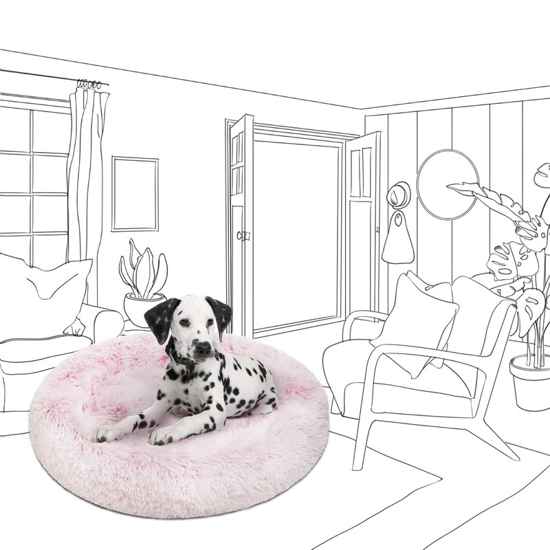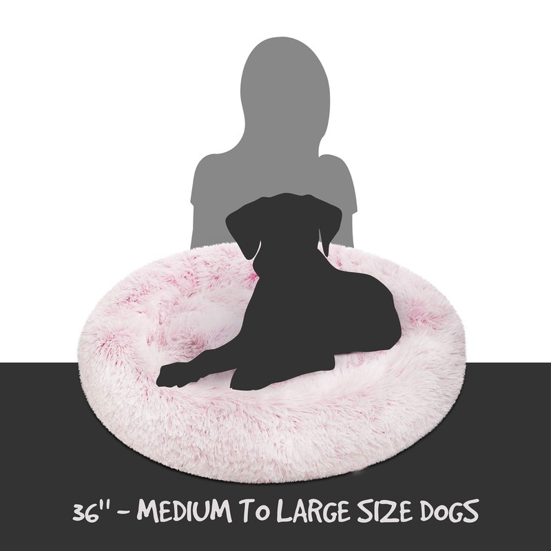 Friends Forever Coco Cat Bed, Faux Fur Dog Beds for Medium Small Dogs - Self Warming Indoor Round Pillow Cuddler, Large, Pink