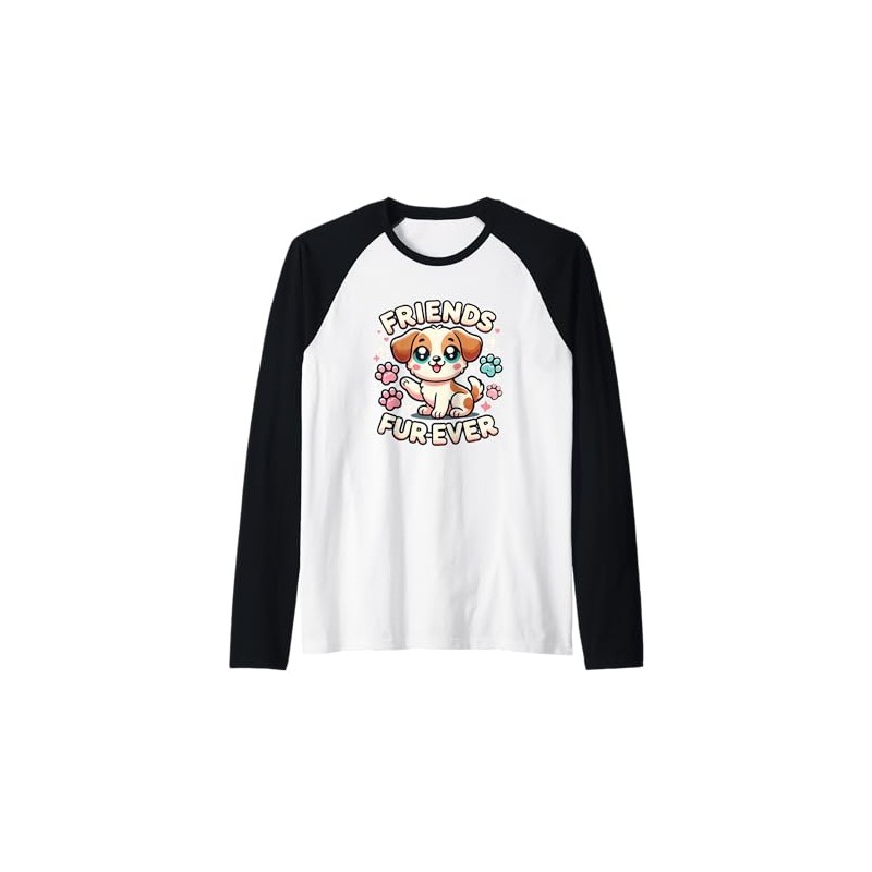 Friends Fur-Ever – Cute Kawaii Puppy Friendship, Dog Owner Raglan Baseball Tee