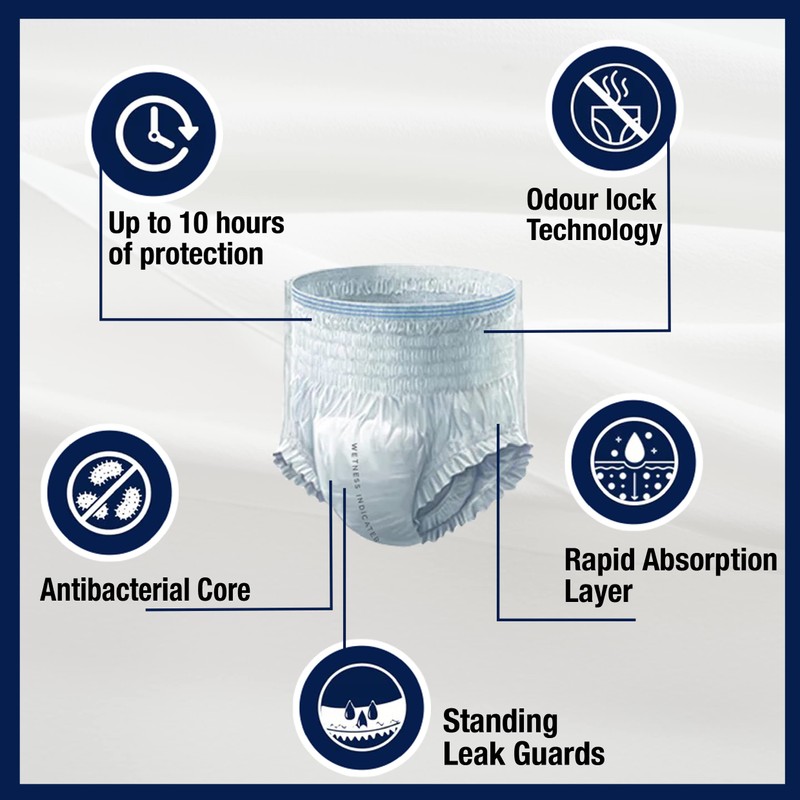 - Friends Premium Adult Dry Pants provide up to 10 hours of protection against leakage and moisture due to their super absorbent core with a rapid absorption layer.