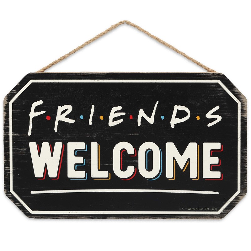 - Friends official product: Your FRIENDS are always there for you! Welcome them in style with this fun wall decor. Featuring the recognizable TV show logo and a black and white color palette, this sign will make you feel like a member of the group.