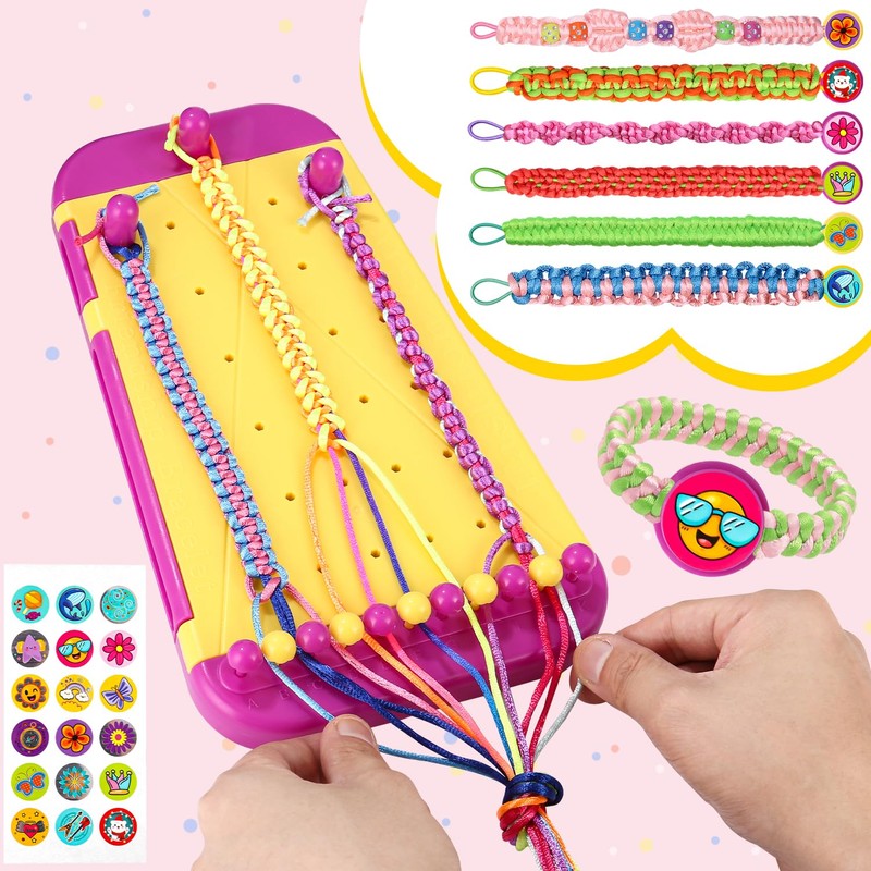 - Friendship bracelets craft set: includes 1 bracelet braided chair, 20 bracelet threads, 10 retractable braided loops, 15 buttons, 18 fashion pattern stickers, 43 removable hooks, 50 fashion beads and 1 step-by-step instructions (English language not guaranteed)