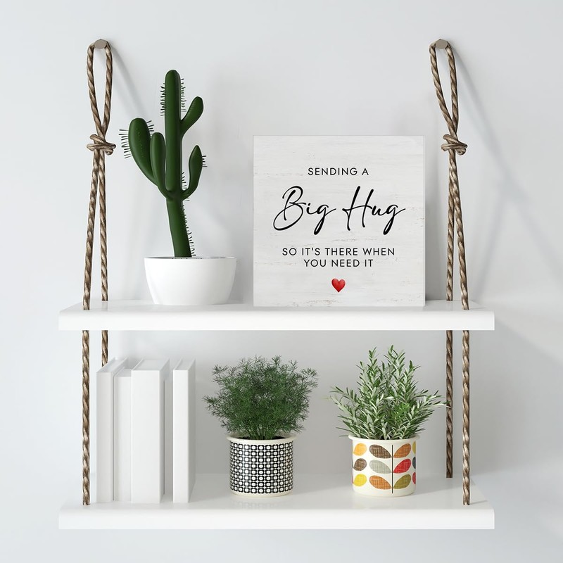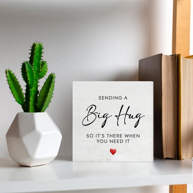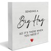 Friendship Gift Wooden Box Sign Sending a Big Hug So It's There When You Need It Desk Decorative Wooden Sign Home Decor for Desk Table Shelf 5 x 5 Inches