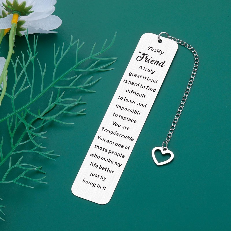 - Quality & Packaging: The friendship bookmark is made of stainless steel, high-polished without burrs, waterproof, sweat-proof, and won't rust or tarnish, which is meaningful and easily carried around. The chain prevents the bookmark from falling. It is packed in our jewelry box, it is convenient to give away at any time. It makes the perfect choice for putting a smile on their face. It's the friend bookmark for friends, coworkers, soulmates, or the one who accompanies to through many times.