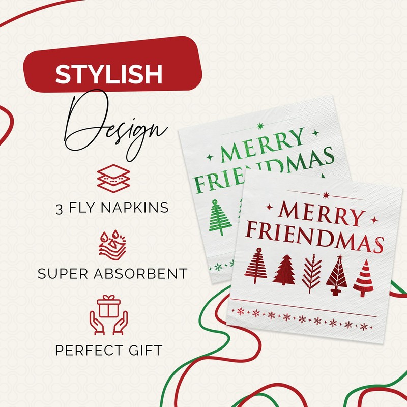 - MAKE YOUR FRIENDSMAS UNFORGETTABLE – These "Merry Friendsmas" napkins bring festive charm and class to any Friends Christmas Party. Designed with eye-catching red and green designs (26 of each), they’re perfect for all your Friendsmas party decorations.