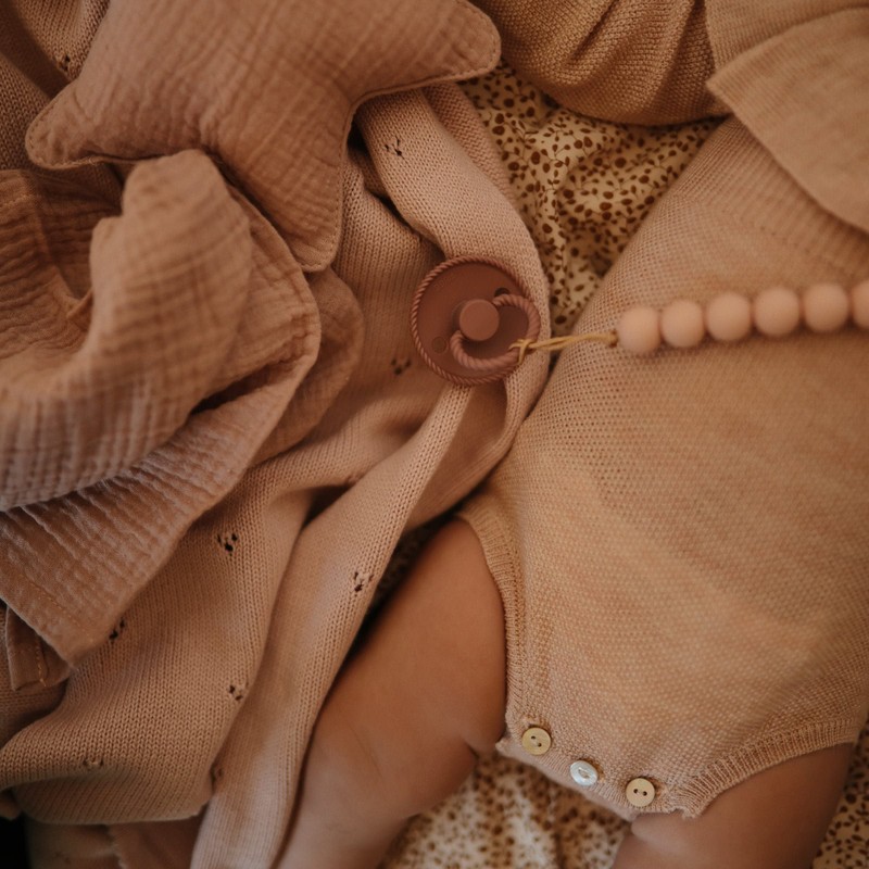 FRIGG Rope Natural Rubber Baby Pacifier | Made in Denmark | BPA-Free (Honey Gold/Portobello, 6-18 Months)