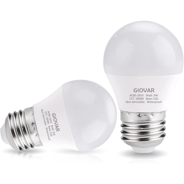 - Wide Application: The socket is standard light bulb size (E26 base) used in countless home appliances, Thanks to it's waterproof and small size, GIOVAR led refrigerator bulb works well in both kitchen and bathroom. Especially suited for fridges, freezers, bedside lamps.
