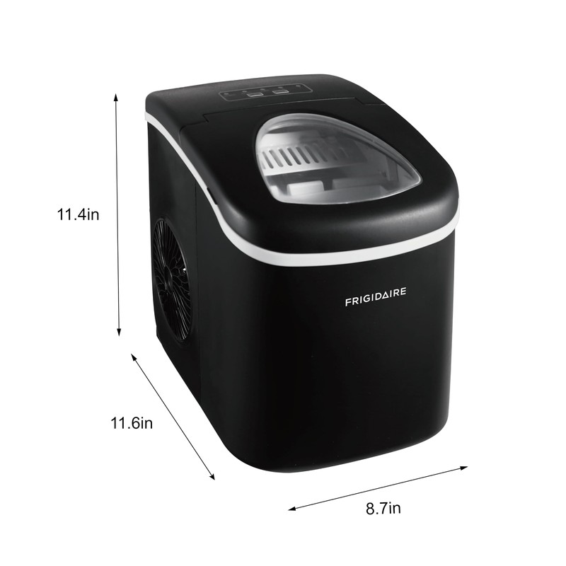 - COMPACT & EASY: ?Frigidaire's countertop portable ice maker offers a wide range of uses with a compact dimension of 13 x 11 x 12.5 inches. Our countertop ice maker is portable and compact, making it simple to transport and use.
