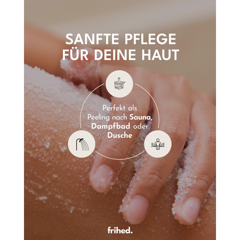 frihed.® Sauna Salt | Salt Scrub with Lavender, Mint & Menthol | Shower and Body Scrub for Sauna, Shower or Steam Bath | Body Scrub for Skin Regeneration (Winter Bloom, 200 g)