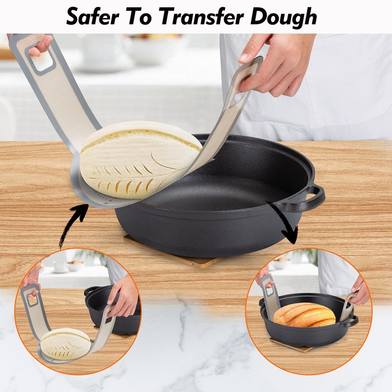 - 【Silicone Bread Sling for Dutch Oven】- Bread baking mat is suitable for baking all types of food for its non-stick surface and non-slip bottom.Bread sling can help you transfer dough to Dutch oven pans more safely and avoid burning your hands when putting bread in and out. The reusable Silicone baking mat provides consistent heat distribution and promotes even baking.