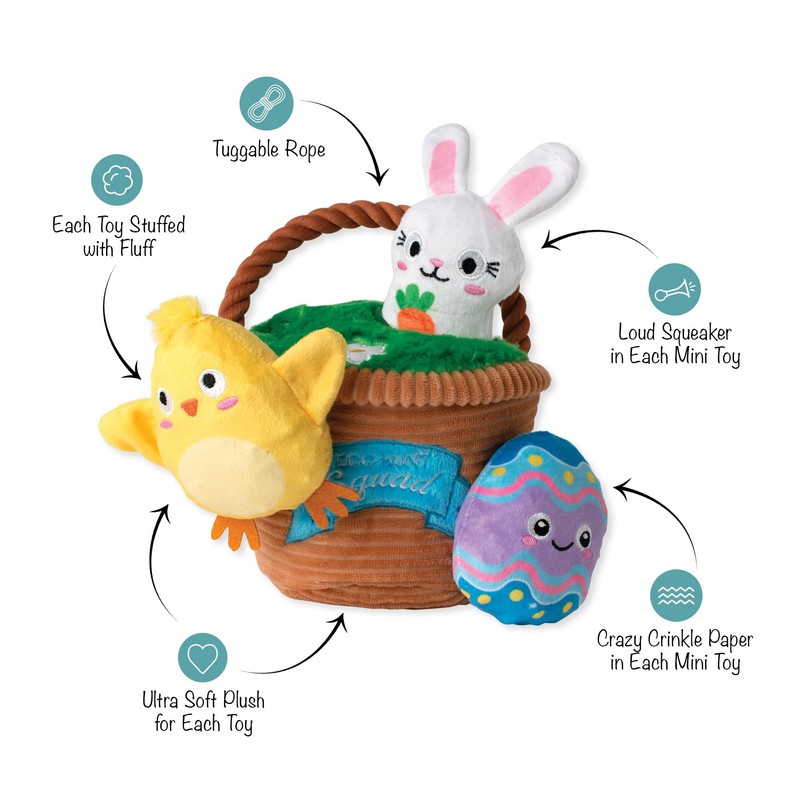Fringe Studio Plush Dog Toy, Hide & Seek Burrow 4 Pieces Set, Egg Hunt Squad, Petshop Collection (289253)