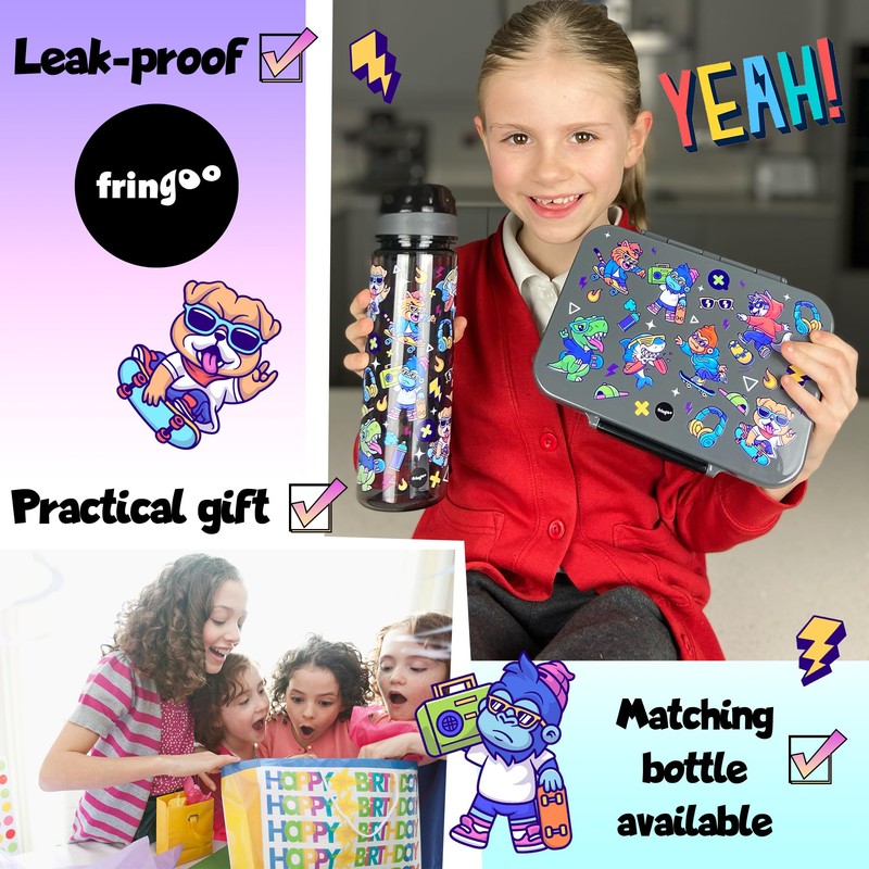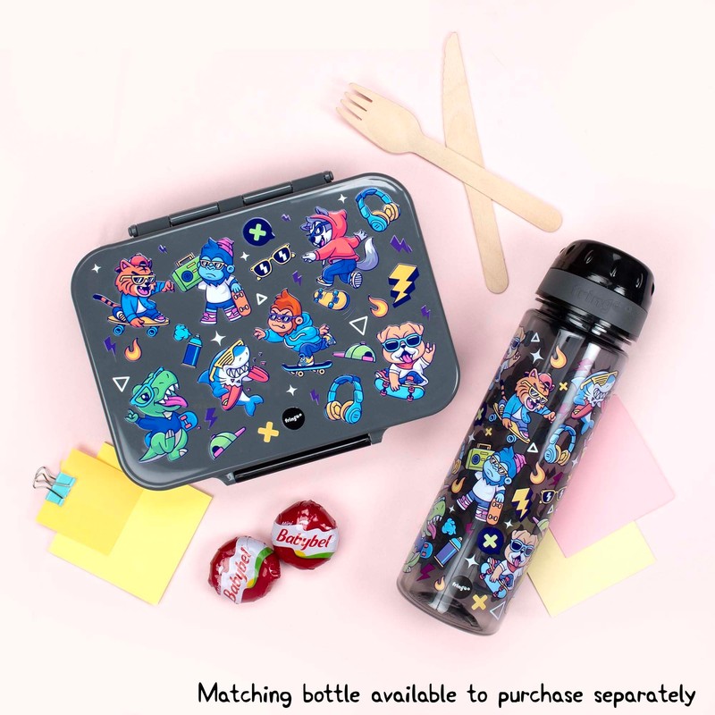 Fringoo - Bento Box - Lunch Box - Leak-Proof, 800ml capactiy, 5 Compartments, Adjustable Divider, BPA-Free, Cool Dude Grey Design