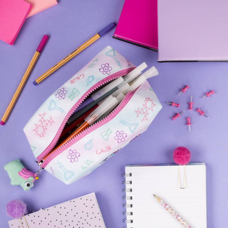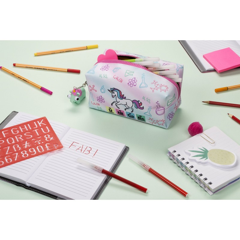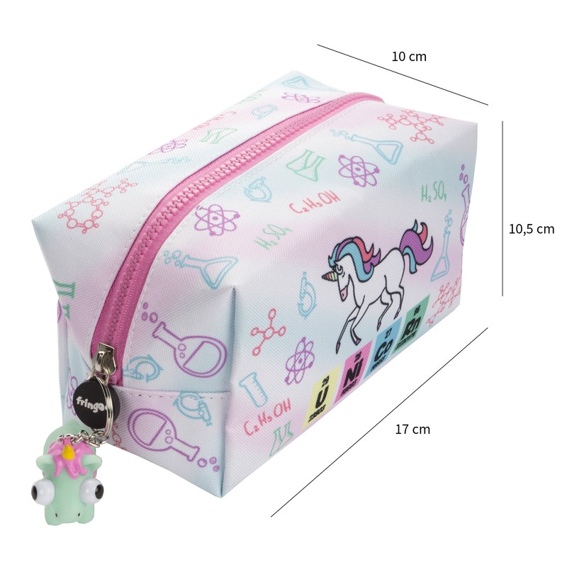FRINGOO® Large Square Pencil Case Stationery Pouch With Eye Popper Zip Puller (Unicorn Chemistry) …