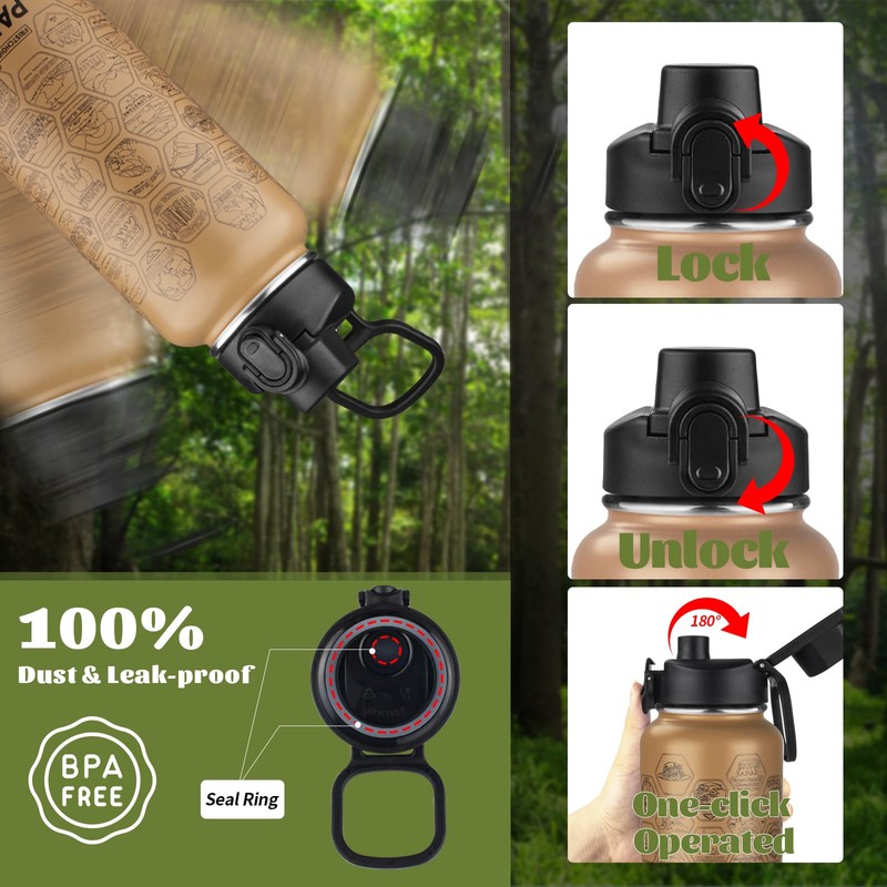 - β πΊππππ π³ππ ππππ π―πππ ππ & π·ππ ππ πΊππππ : Our stainless steel water bottles are equipped with a spout lid and a removable straw that free you to drink water the way you want.The straw cover with rubber sealing ring ensures that no matter how bumpy your journey is, there won't be a drop of leakage.With just a click of a button, you can effortlessly open it with one hand.Our spout lid comes with a handle to make it easy to carry.