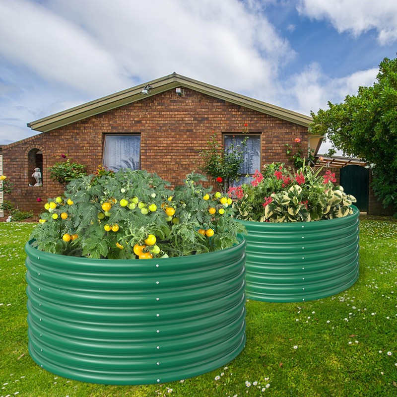FRIZIONE 2-Pack 3FT(D) x2FT(H) Round Raised Garden Bed Outdoor, Raised Garden Beds for Flower, Raised Planter Box Outdoor for Herb, Vegetable-Dark Green