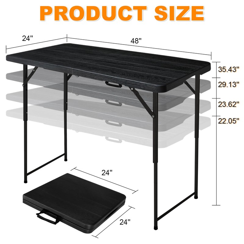 FROASISPRO FROASISPRO 4ft Folding Table, Portable Fold-in-Half Adjustable Height Utility Table for Indoor/Outdoor Use, Durable HDPE & Steel, Stable & Lightweight, Multi-Purpose, Black Woodgrain