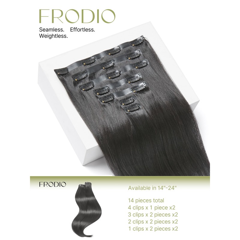 Frodio Clip Ins Hair Extensions Black: Remy Real Human Hair Pu Seamless Long Yaki Straight Invisible Beauty For Women Wave 22 Inch 2 Pack 200g 14 Piece Full Thick Brazilian Jet Black Natural Color