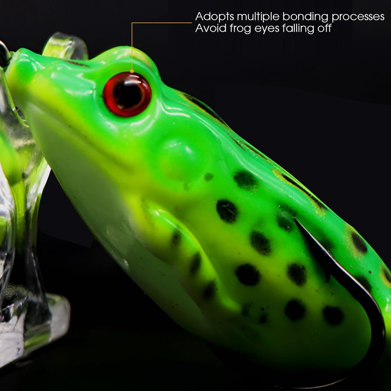 - ✅ MORE ATTRACTIVE DESIGN With the simulated frog body and simulated 3D frog eyes, the frog fish bait looks like a real frog for the target fish. The simulated swimming actions can also attract the fish.