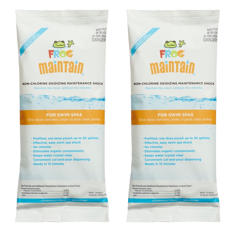 FROG Maintain for Swim Spas is a powerful, single-dose non-chlorine shock packet that keeps swim spa water clear and sparkling. Just add one packet monthly, per label instructions, for easy water maintenance and longer-lasting SmartChlor cartridges.