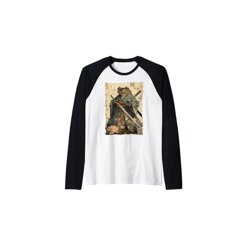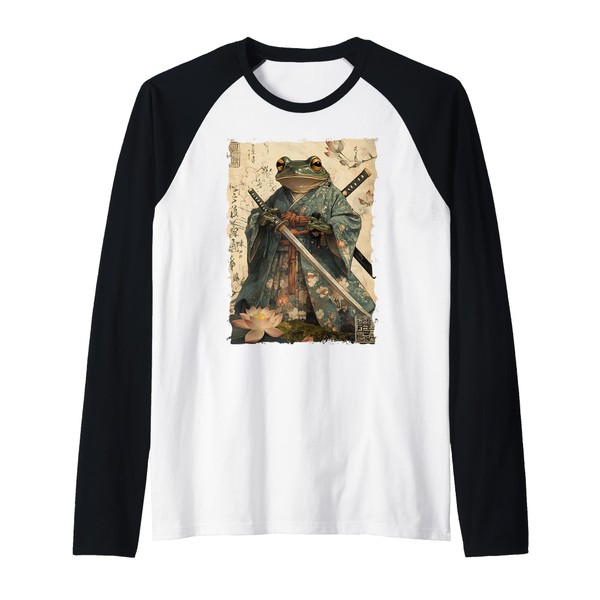 Frog Samurai Warrior Katana Ukiyoe Ronin Raglan Baseball Tee