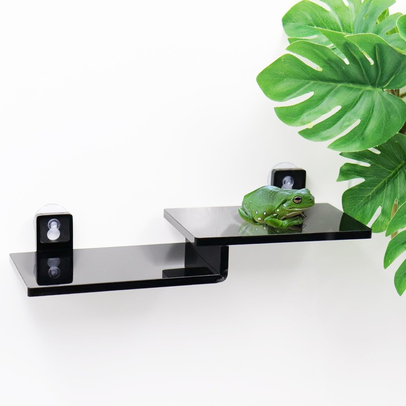 - Effortless Installation: Equipped with two reliable suction cups, securing this platform on glass surfaces is a breeze. This ensures a stable and safe space for your frogs, geckos, and small lizards to bask and interact.