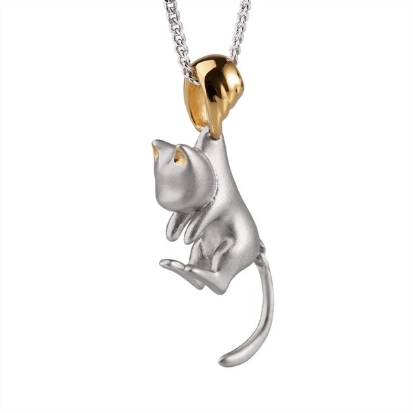 Frogsnout Necklace, Cute Cat Design, Movable Tail, Catching Eyes, Silver, Per...