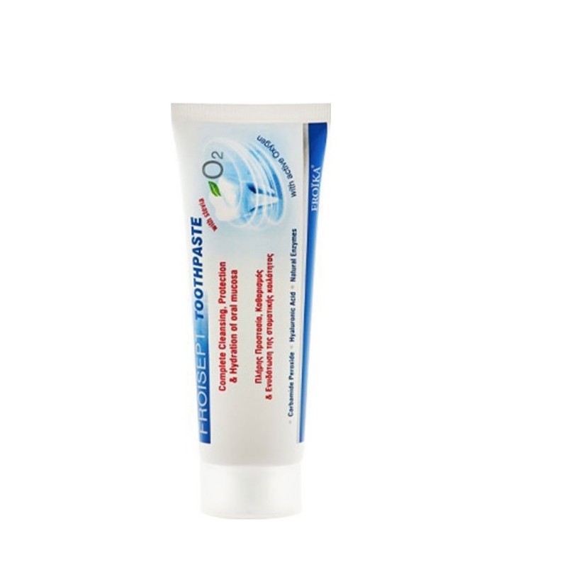 The FROISEPT toothpaste cleanses and protects the oral cavity with the action of active oxygen and natural enzymes (Lactoferrin, Lactoperoxidase & Glucose Oxidase).