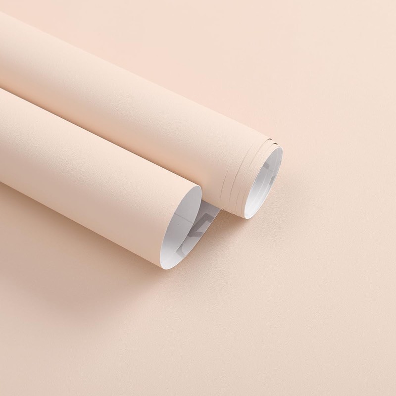 - Elegant beige matte texture: This peel and stick wallpaper with a matte design, the color of this wallpaper is beige with a touch of pink, which adding a sense of understated luxury to indoor spaces. Its matte texture exhibits delicate variations in light and shadow, creating a mysterious yet visually rich environment. This design blends well with a variety of interior styles and It can be matched with any colour to create a serene and welcoming atmosphere for the space.