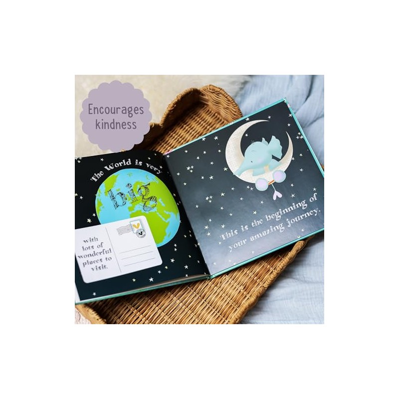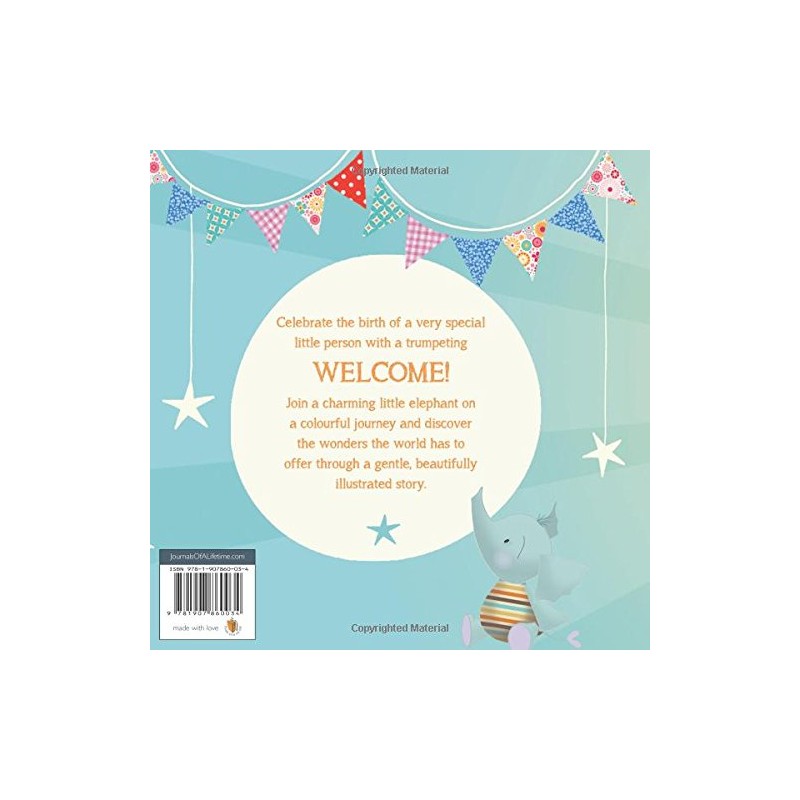An award winning, delightful and beautifully illustrated hardback picture book celebrating the arrival of a new baby.Full of gorgeous full colour illustrations, the story follows a charming little elephant on an exciting journey, discovering all the wonders the world has to offer and how it's filled with beautiful things. The book also includes messages of wellbeing. With space for a handwritten personal message in the front, Welcome To The World makes a wonderful keepsake gift as a new baby present and is ideal for any baby celebration such as a baby shower, christening or naming ceremony.Guide age range: 0-5 years.Made with paper & love, from you to me.Why we love itWe love this book, with its gorgeous illustrations and truly sentimental messages that welcome a child to the world. We can see why it's a best seller, and we really like that the author has also considered a complementary gift for a sibling.?Square 21.7 x 21.7cm?Written and illustrated by Lucy Tapper and Steve Wilson?32 pages of 140gsm coated, FSC paper?Hardback book?Matt colour cover with spot UV detail and colour internal pages?Colour coordinated end papers?Ethically produced from sustainably sourced materials?Designed and published in the UK?Child Protection Certified