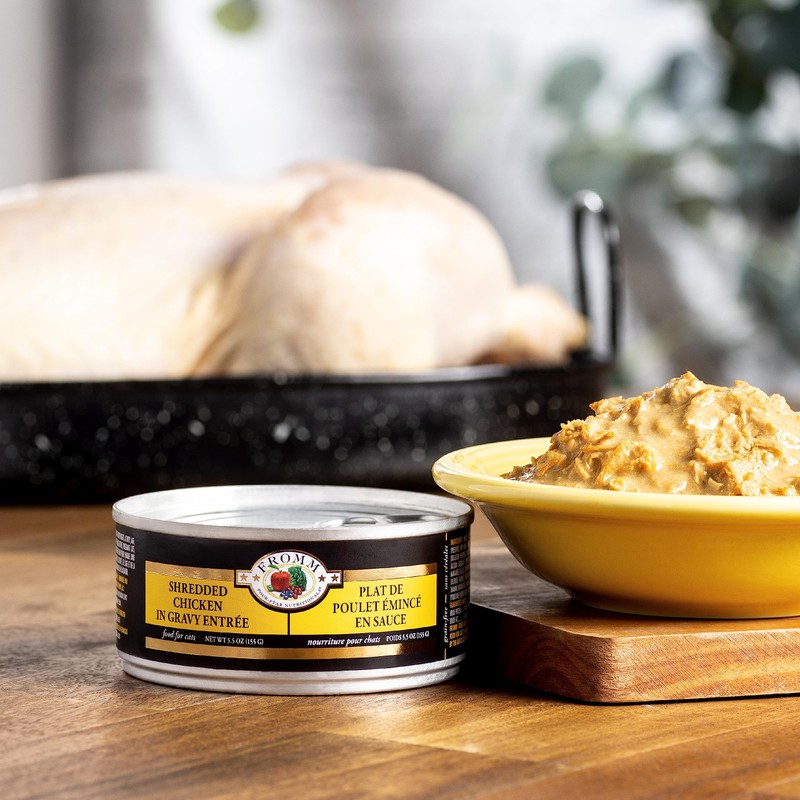 Fromm Four-Star Nutritionals Shredded Chicken in Gravy Entrée - Premium Wet Cat Food - Chicken Recipe - Case of (12) 5.5 oz Cans