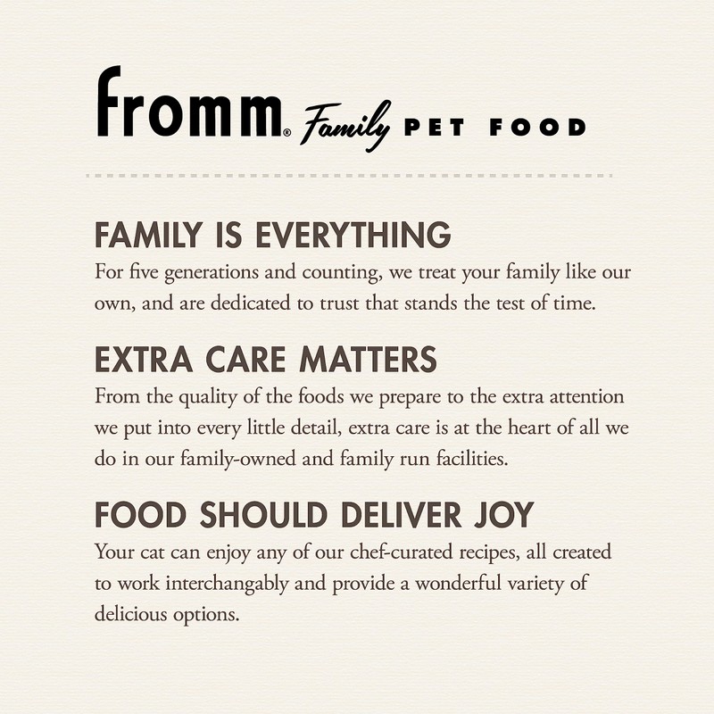 • FAMILY OWNED & OPERATED - Fromm Family Foods is a fifth-generation family-owned-and-operated pet food company based in Wisconsin. Since 1904, our family has maintained a tradition of quiet innovation dedicated to the health and nutrition of animals.