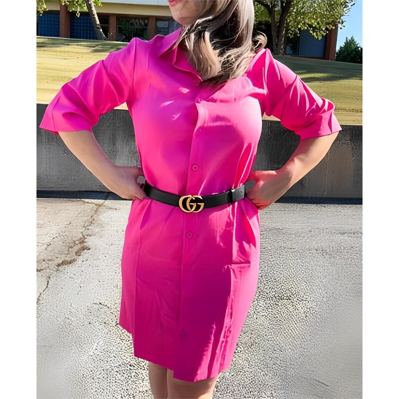 Fronage Women's Casual Cotton Linen Dress Button Up V Neck 1/2 Sleeve Tshirt Midi Dresses Beach Summer 2024 Hot Pink, M