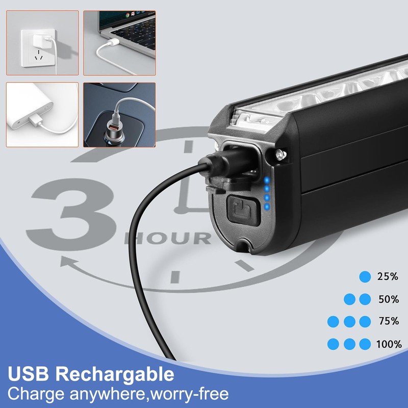 - 4 Lighting Modes and USB Rechargeable: Choose from 4 versatile lighting modes—High, Medium, Low, and Flash—to adapt to different environments. The built-in USB rechargeable battery ensures quick and easy charging, saving you the hassle of replacing batteries.