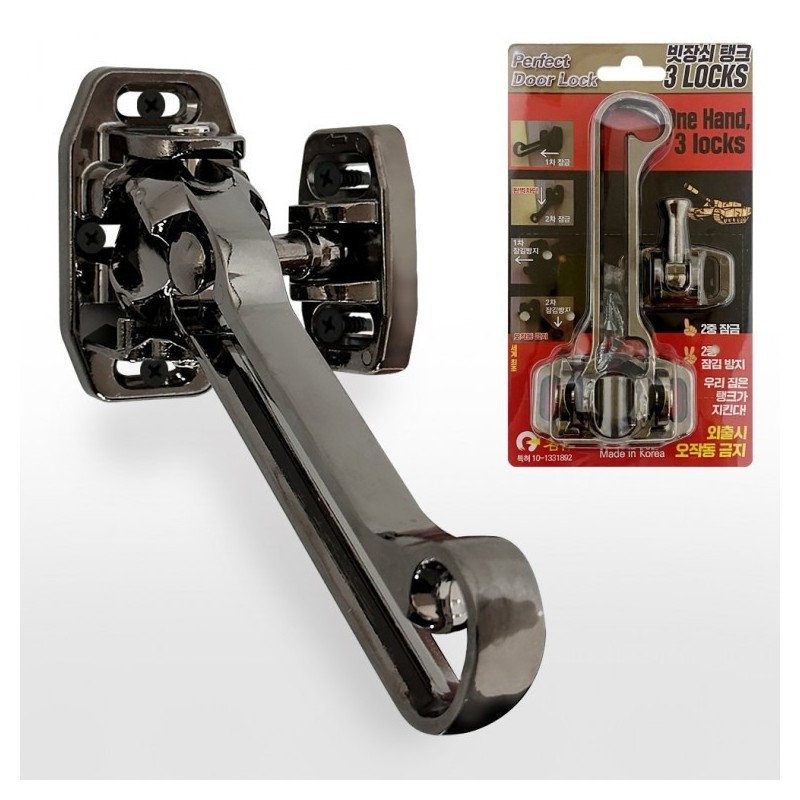 Front Door Security Latch Bolt Tank (3LOCKS) Black) Double Lock