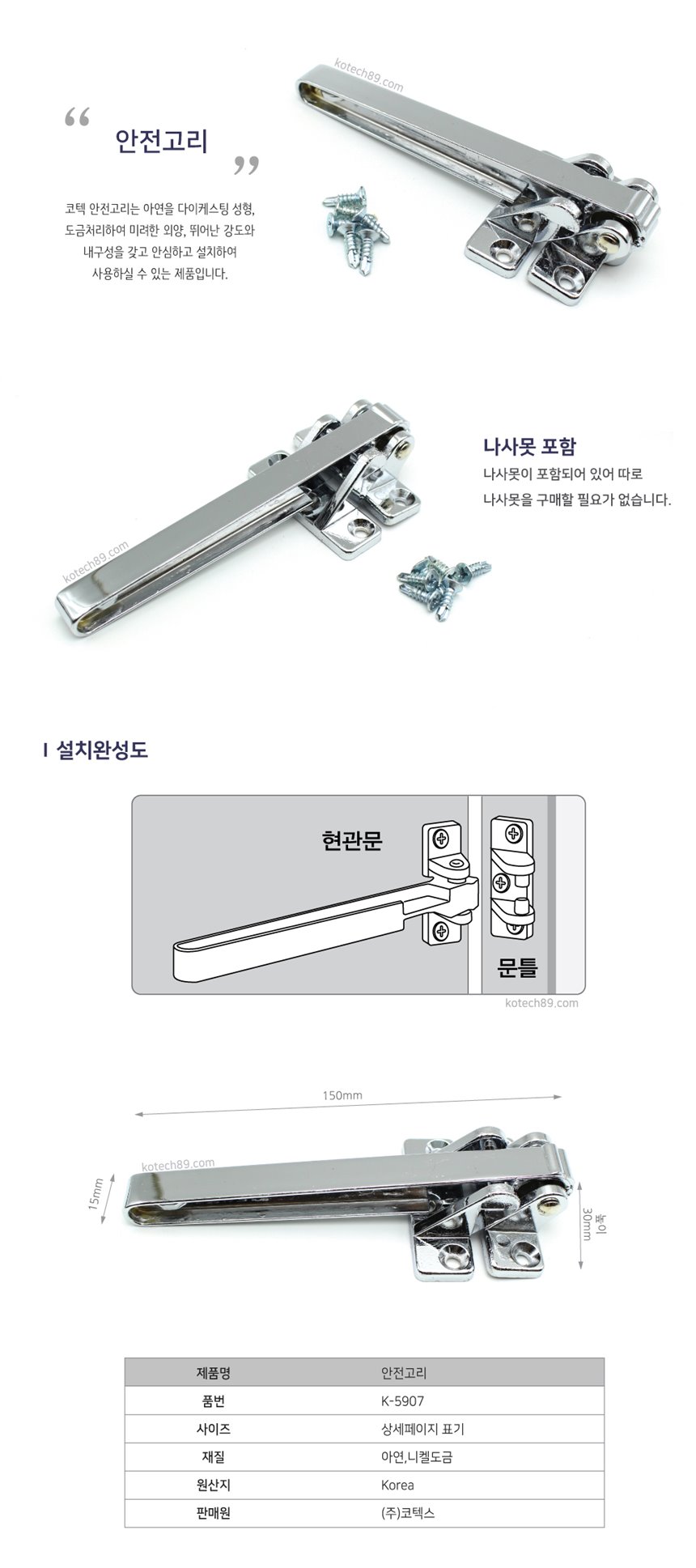 Front Door Security Latch (K-5907) 2ea