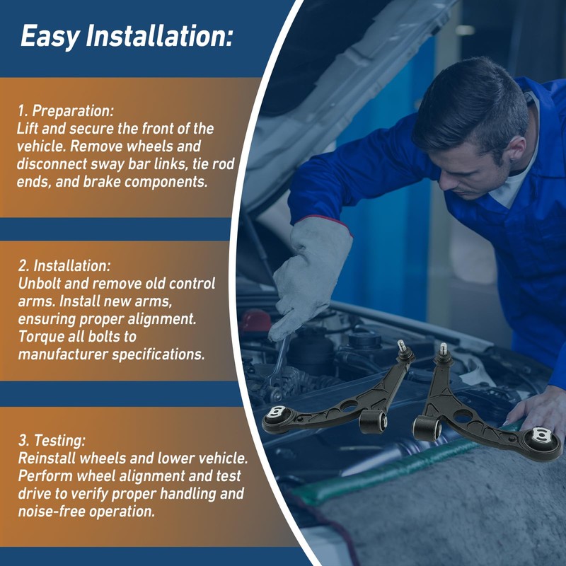 - Material Quality: All control arms are rigorously tested to ensure reliable performance. Silicone bushings effectively reduce road noise and improve safe driving, enhancing overall ride comfort.