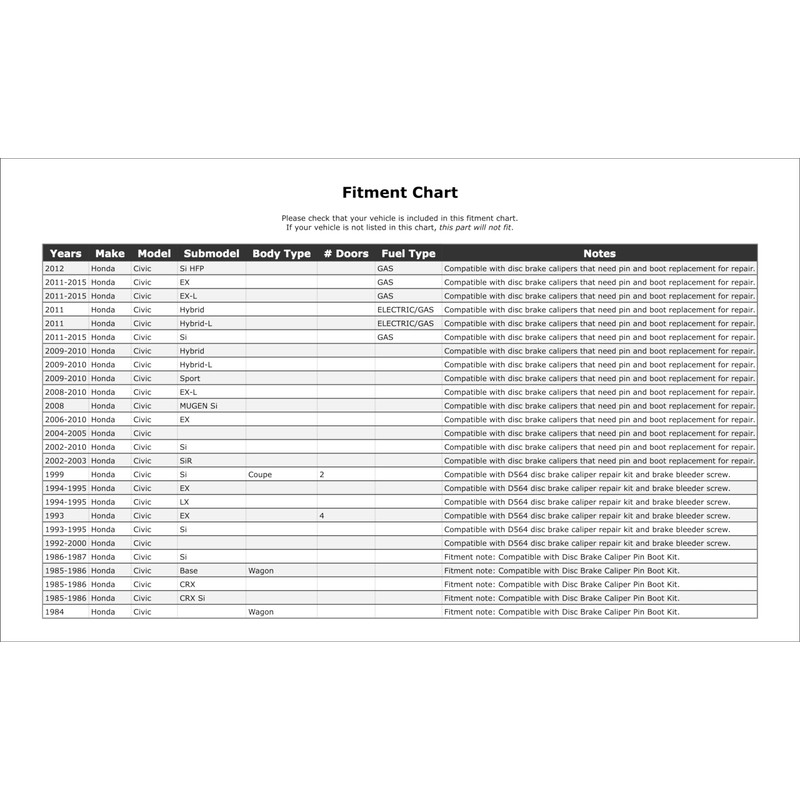 - Perfect Compatibility: Compatibility is key. Make sure to check our product specifications (in image gallery) to confirm that this OE replacement disc brake caliper pin boot kit matches your vehicle's requirements. Get the perfect fit and optimal performance every time with our replacement parts.