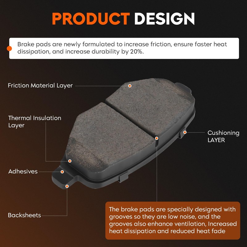 - Product Design: The brake pads are specially designed with grooves, so that there is almost no noise, especially squealing, when braking, the braking effect is excellent, and the grooves can also enhance the ventilation ability.