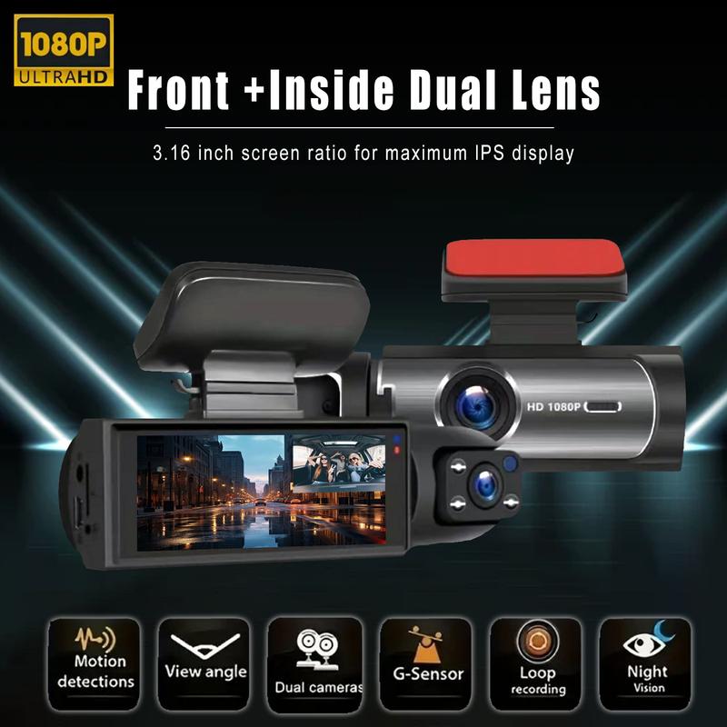Front & Rear Dashcam, BCUOZ 1 Count Dash Camera for Car, Wide Angle Car Driving Recorder with IR Night-Vision G Sensor, 3.16 Inch IPS Screen 1080P HD Camera with Dual Lens, Fall Gift, Birthday Gifts