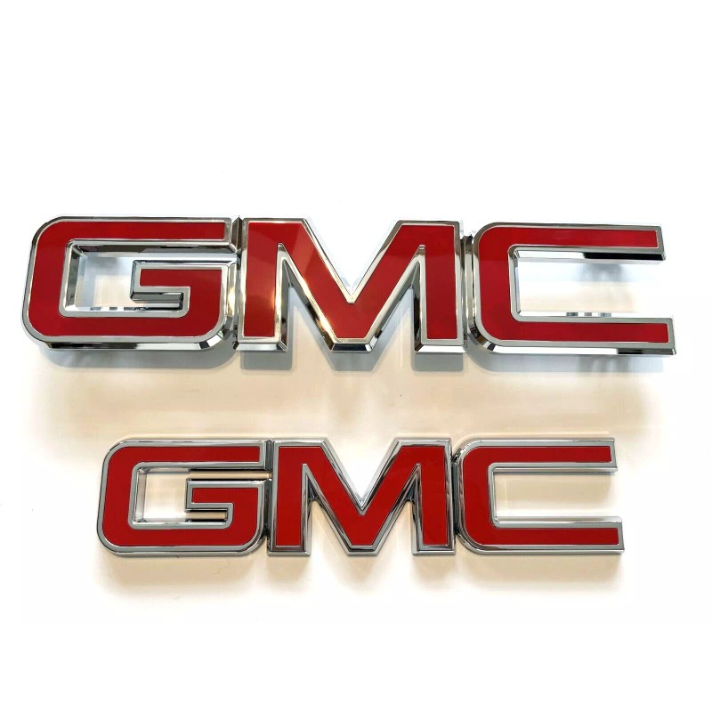 Front & Rear Red Emblem Kit Combo – New GM Part #84395036 for 2015–2019 GMC Sierra