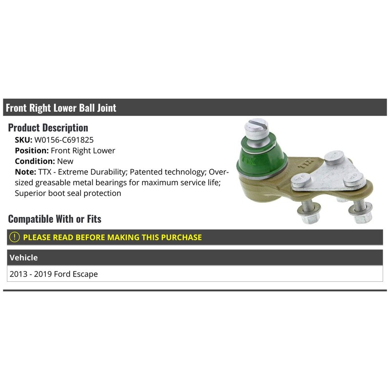 Front Right Passenger Side Lower Ball Joint - Compatible with 2013-2019 Ford Escape