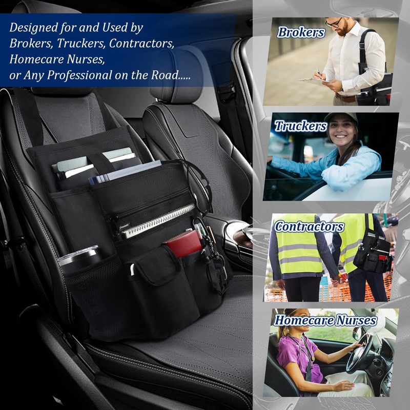 - Stay Organized on the Road: This car seat organizer keeps your vehicle tidy with essentials close at hand. Perfect for project coordinators, truckers, brokers, and other on-the-go professionals who spend long hours on the road!
